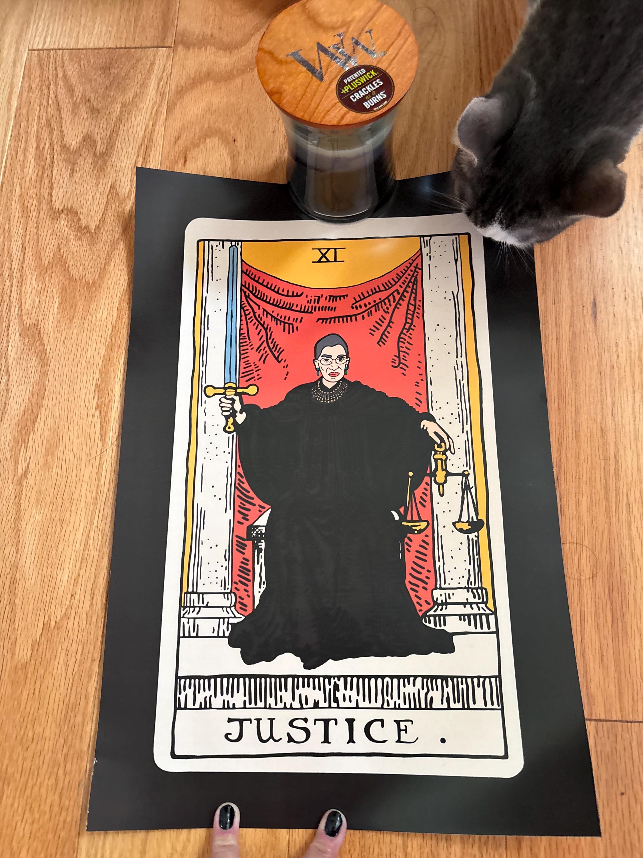 This artwork is a unique addition to RBG collections, and that is the reason I purchased it for a member of the legal profession. The package (tube) was tied up in the delivery queue for a couple weeks, and the seller was very helpful, courteous, and quick to respond. Excellent service!
